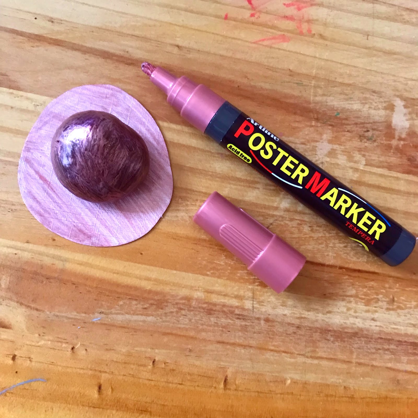 We drew faces on the ghosts with the Artline 70 pen and paint marker and then moved on to the pumpkin.